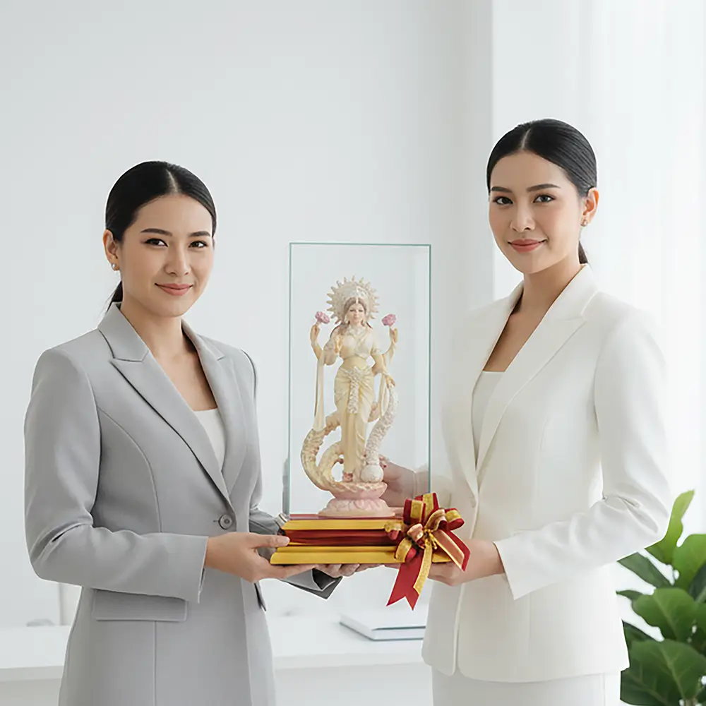 การมอบพระแม่ลักษมีเป็นของขวัญมงคล เป็นวิธีการส่งต่อพลังบวกและความปรารถนาดีที่มีค่าที่สุด โดยเฉพาะอย่างยิ่ง “องค์พระแม่ลักษมี” เทพีแห่งความมั่งคั่ง ร่ำรวย และความอุดมสมบูรณ์ ซึ่งถือเป็นของขวัญมงคล ที่ได้รับความนิยมสูงสุด ไม่ว่าจะมอบให้ผู้ใหญ่ เจ้านาย คู่ค้า หรือคนพิเศษ ก็ล้วนสื่อถึงความหมายดี ๆ และช่วยเสริมโชคลาภให้ผู้รับ