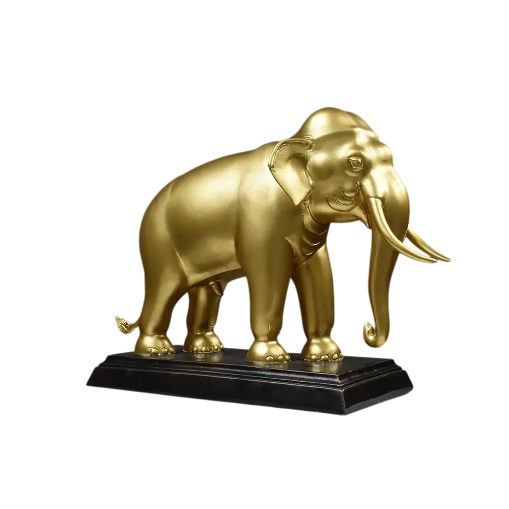 ช้างเป็นสัตว์ที่มีรูปร่างสูงใหญ่ มีนิสัยที่เป็นมิตรและไม่ดุร้ายเนื่องจากช้าง เป็นสัตว์ที่กินพืชเป็นอาหารจึงไม่คุกคามชีวิตสัตว์โลกอื่นๆ ในทางด้านของฮวงจุ้ยนำช้างมาใช้ในเรื่องของความสูงใหญ่ เปรียบเป็นภูเขาสูงใหญ่ที่มั่นคง ตามหลักของฮวงจุ้ย โต๊ะทำงานของผู้บริหารหรือเจ้าของกิจการควรอิงผนังทึบและเรียบ เพื่อให้เกิดความมั่นคง แต่ถ้าเกิดว่าสถานที่ทำงานนั้นไม่เอื้ออำนวยจำเป็นต้องนั่งอิงด้านที่เป็นหน้าต่างกระจก ควรจะปิดผ้าม่านให้ทึบและวางรูปปั้นช้างไว้ที่ด้านหลังที่นั่ง นอกจากนี้ยังสามารถใช้ช้างเพื่อสลายพลังปราณชี่พิฆาตได้ด้วย เช่นห้องทำงานที่มีลักษณะเป็นรูปสามเหลี่ยม บังคับให้ต้องนั่งอิงมุมสามเหลี่ยมซึ่งหมายถึงความไม่มั่นคง และมุมแหลมทิ่มแทงเป็นปราณชี่พิฆาต ในกรณีนี้ก็สามารถนำรูปปั้นช้างมาใช้ได้เช่นกัน และช้างยังเป็นสัญลักษณ์ ของความสำเร็จ ความสมบูรณ์ ให้กับชีวิตตนเอง ครอบครัว และผู้ที่ครอบครอง