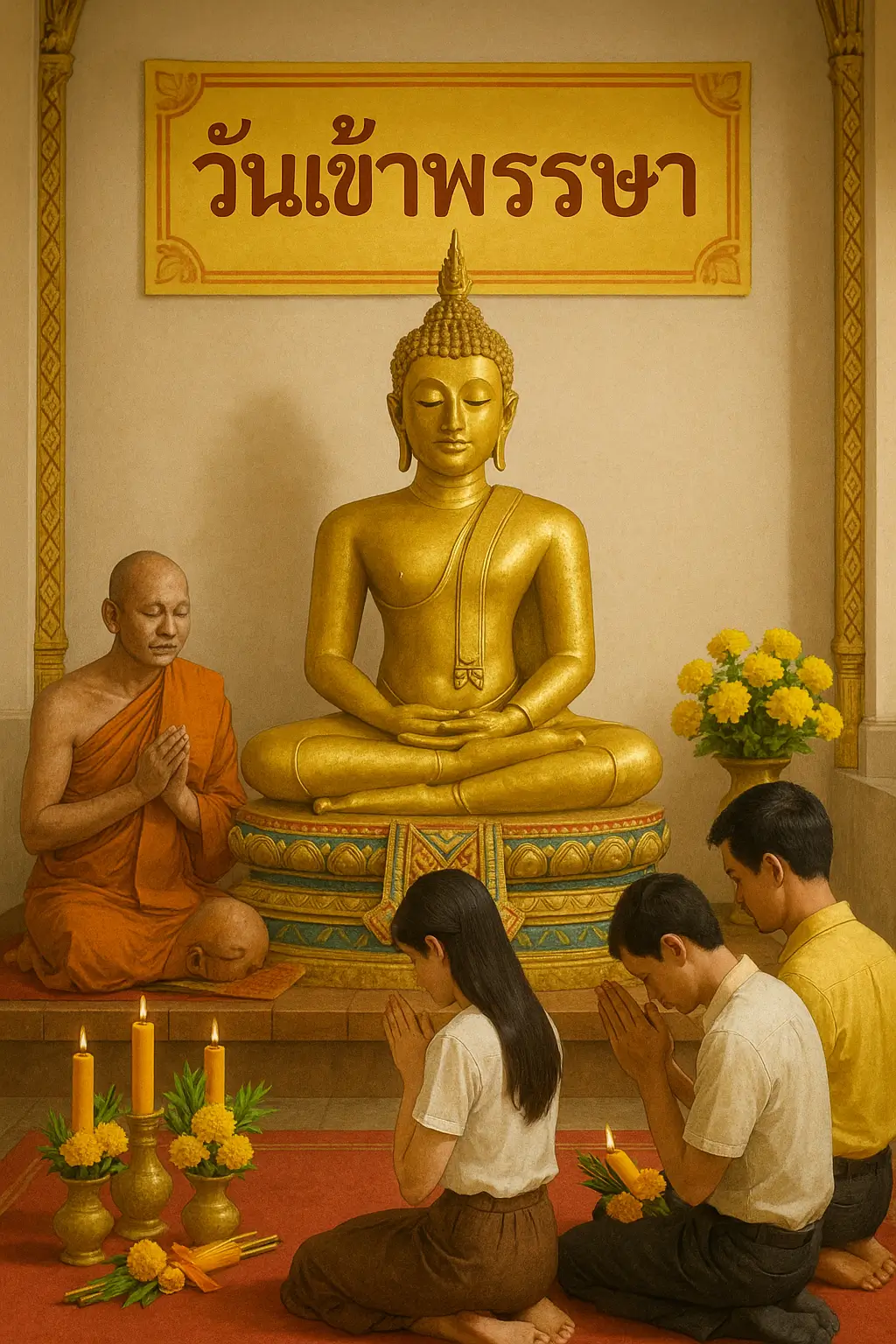 การ สวดมนต์ และ นั่งสมาธิ ทุกวันในช่วงเข้าพรรษา ช่วยให้จิตใจสงบ ลดความเครียด และเสริมสร้างปัญญา เพื่อความเจริญรุ่งเรืองทั้งทางโลกและทางธรรม