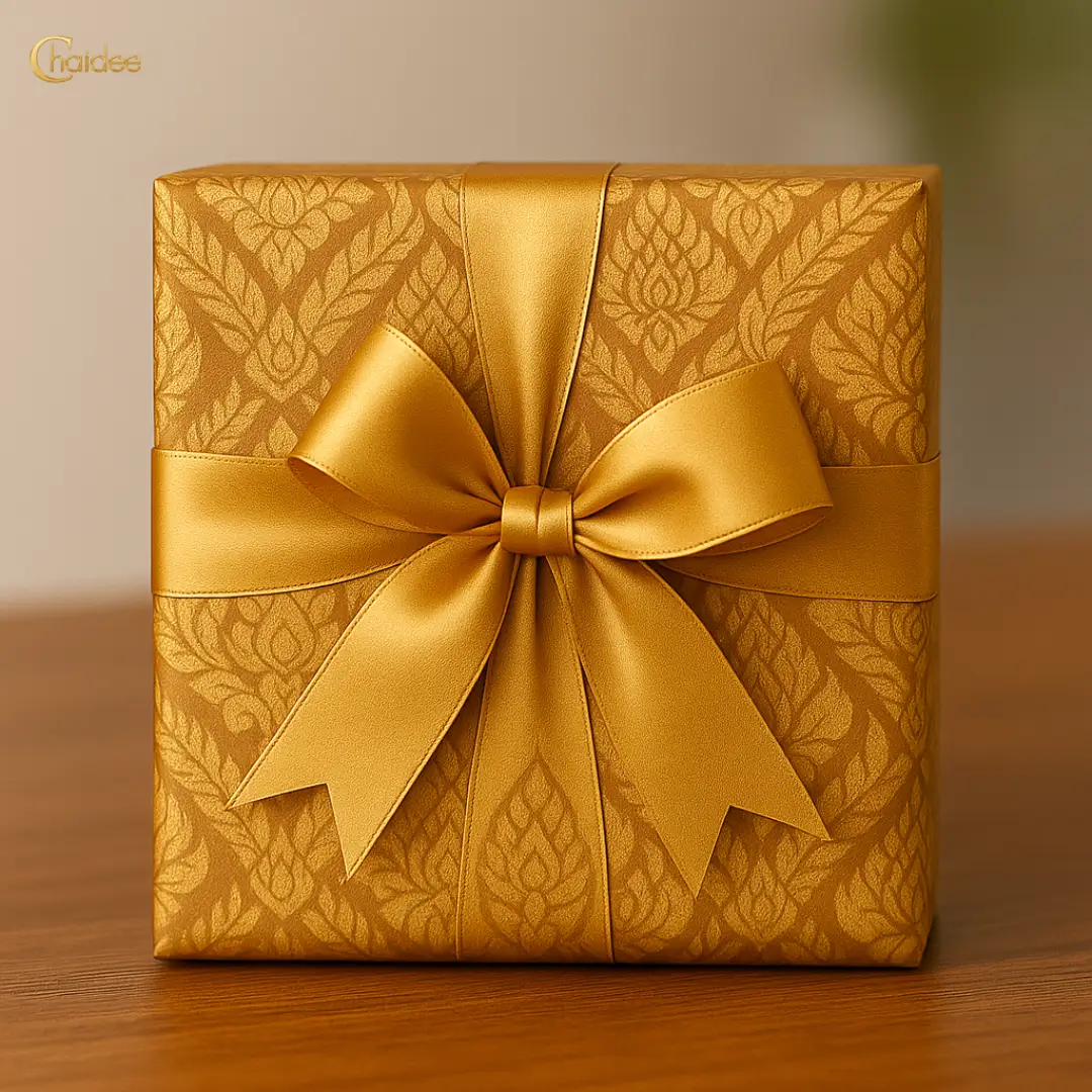 เช่น ชุดของขวัญใส่กล่องลายไทย, หรือผูกโบว์พร้อมการ์ดขอบคุณ